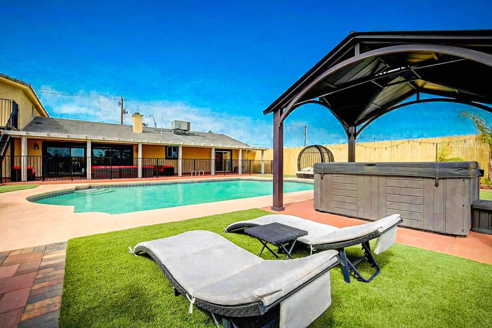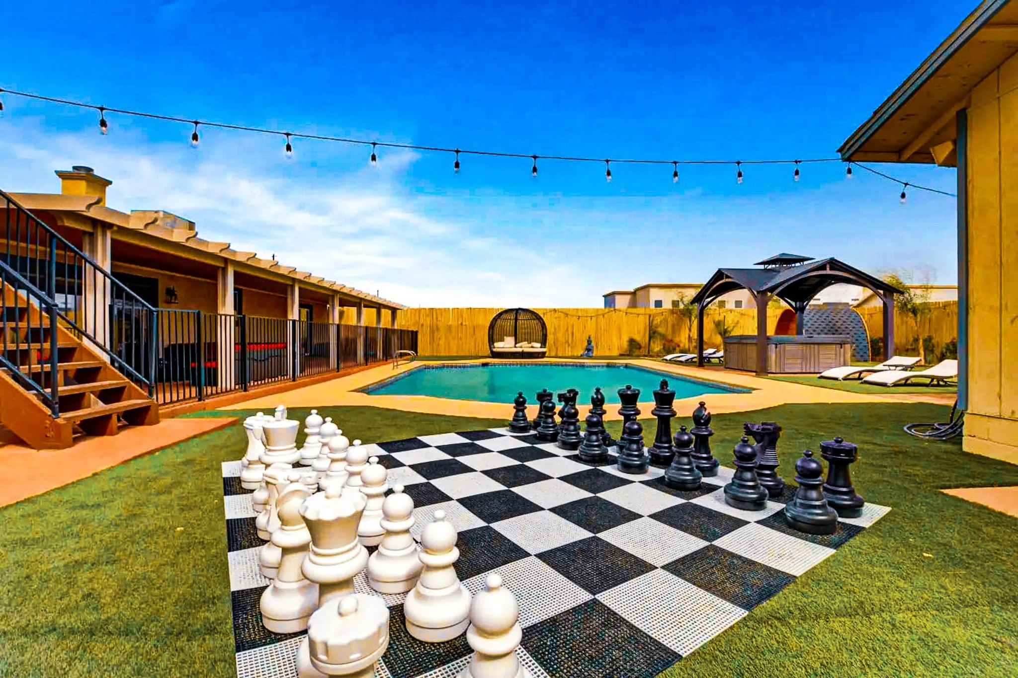 ☀ Incredible backyard; pool, cabanas style areas, yard games, and hot tub