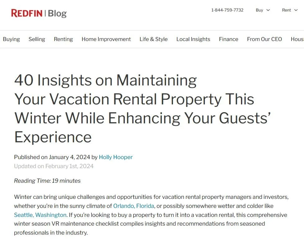 We were recently featured in a Redfin blog about maintaining vacation rental properties during winter while enchancing the guests experiences.